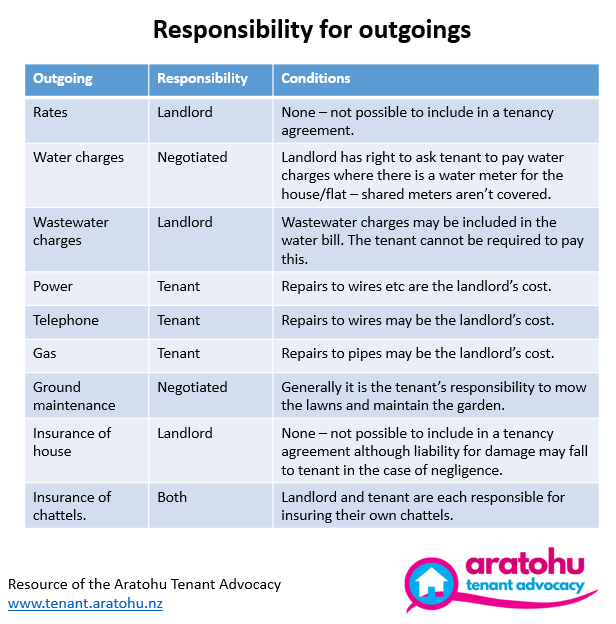 Tenants are responsible to pay for outgoings that can be directly attributed to their living at the property, and their use of the facilities (s 39(3) RTA).